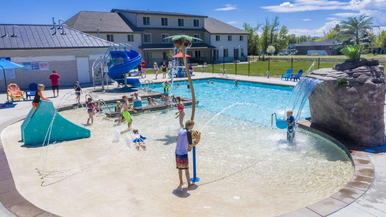 We loved the brand new condo and the best part was the pool. There is a splash pad, water fall, water slide, hot tub and basketball hoop. Great grass area to play on and plenty of outdoor seating. We loved it.